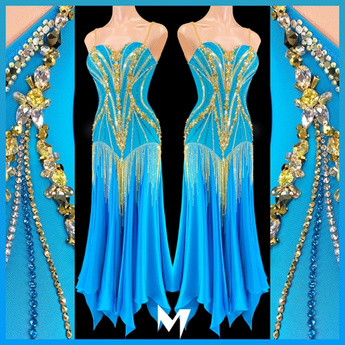 [BRAND NEW] Turquoise Blue and Gold Panel Skirt Smooth Dress..