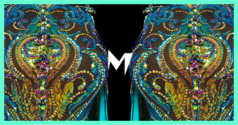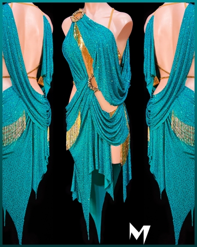[PRE-OWNED] Crystallized Teal Drape Dress with Gold Detailin..