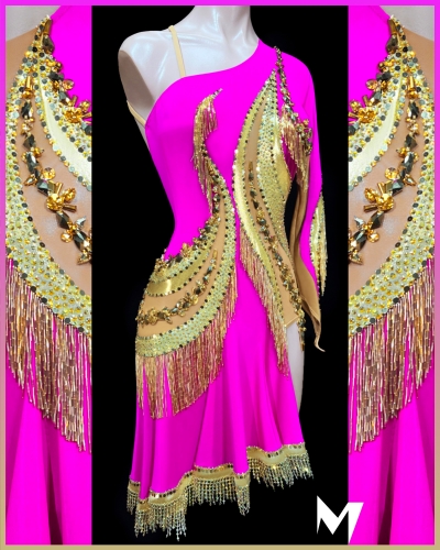 [PRE-OWNED] Pink and Gold One-Sleeve Dress with Mesh Cutouts..