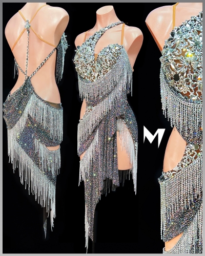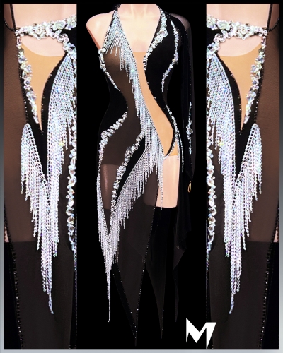 [PRE-OWNED] Crystal AB and Silver Embellished Drape Dress #S..