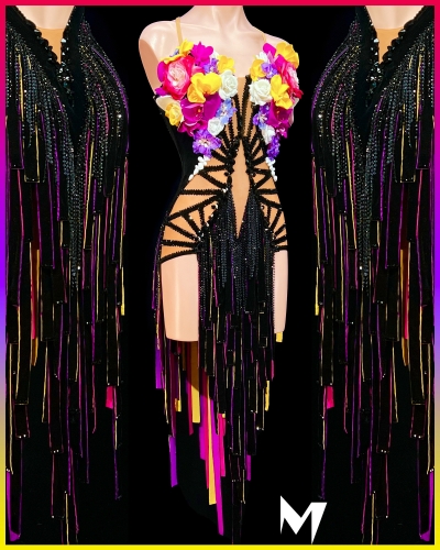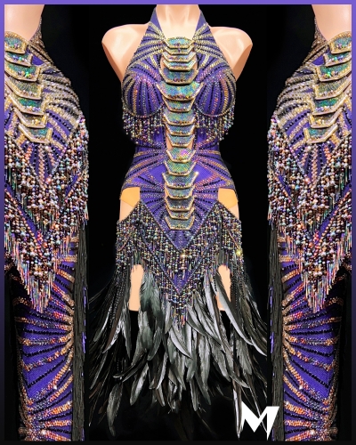 [PRE-OWNED] Multicolored Interchangable Feather Dress/Fringe..