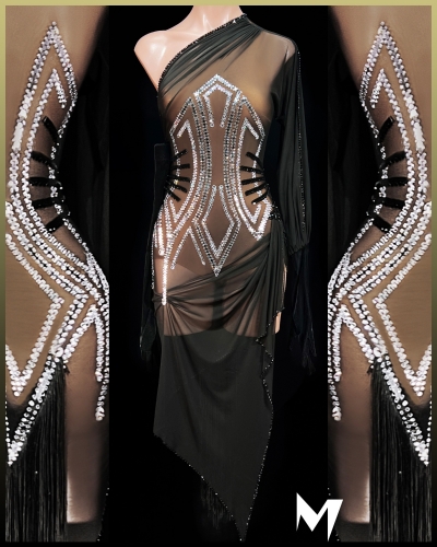 [PRE-OWNED] Asymmetrical Black Mesh Dress with Silver Corset..