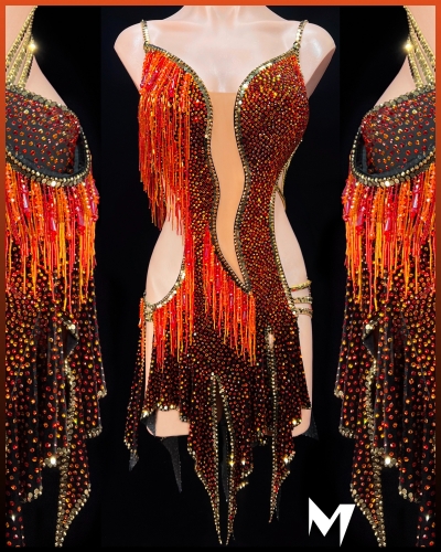 [PRE-OWNED] Fire Red and Orange Crystallized and Beaded Pane..