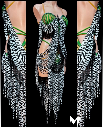 [PRE-OWNED] Zebra Print Drape Dress with Emerald and Jet Bea..