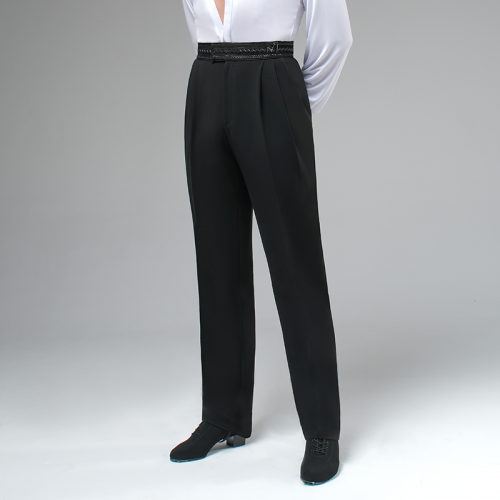 Tapered Latin Dance Pants with Braided Leather Waistband, Po..