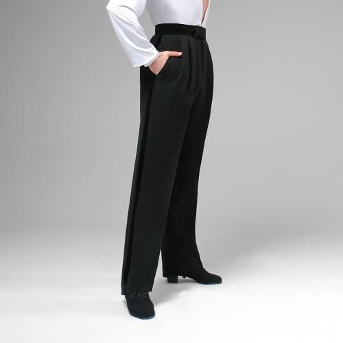 Straight-Cut Latin Dance Pants with Velvet/Satin Waistband, ..