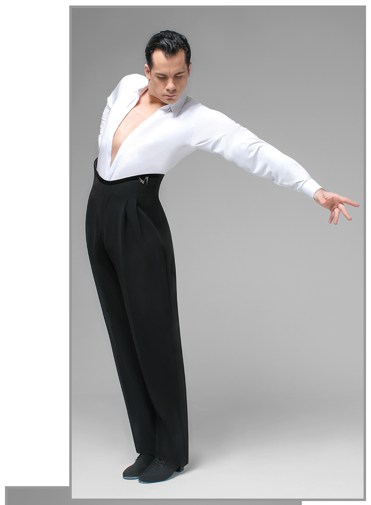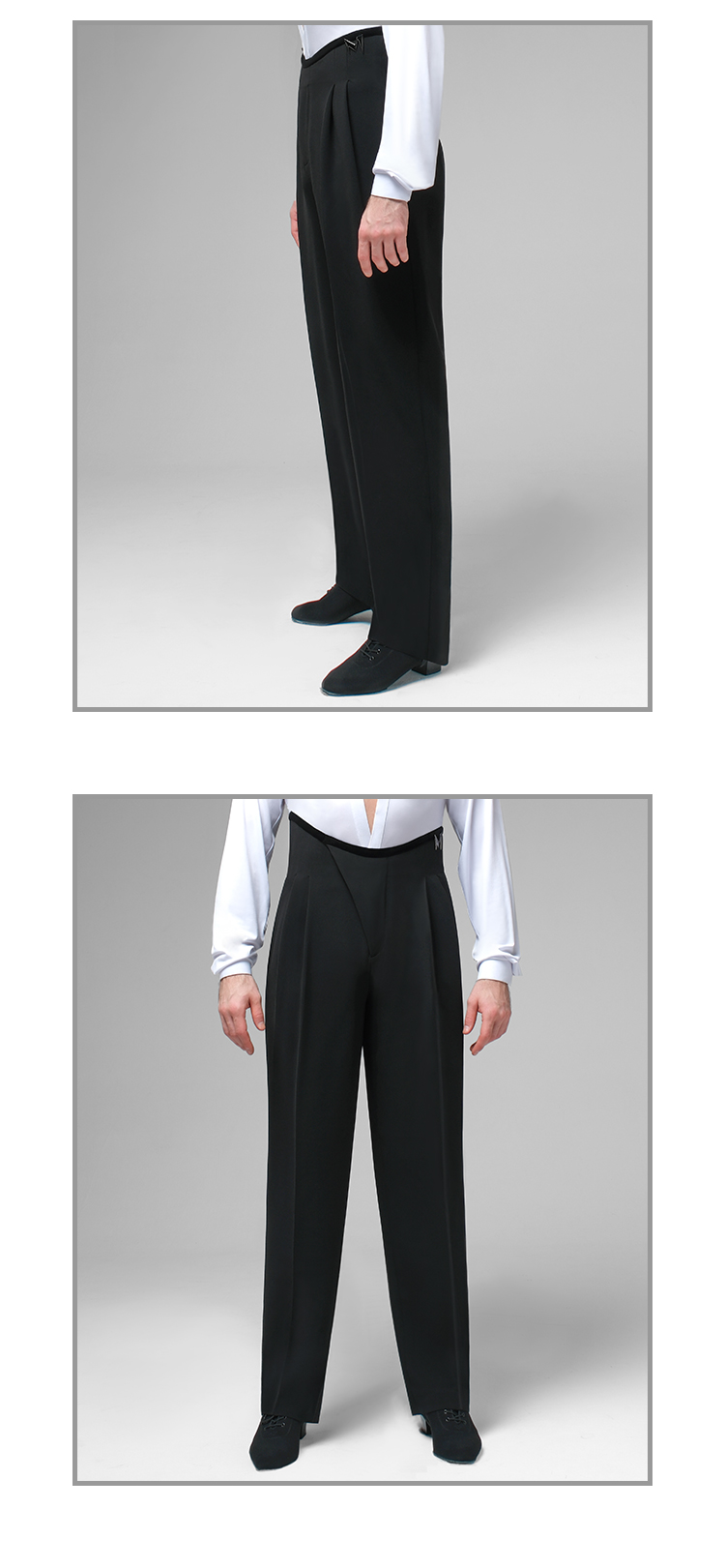 Tapered Latin Dance Pants with Pointed Rear Waist Design, Decorative Buckle & Double Pleats #K006