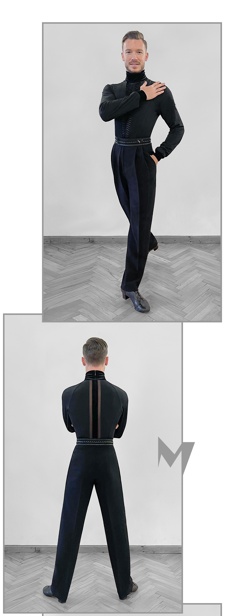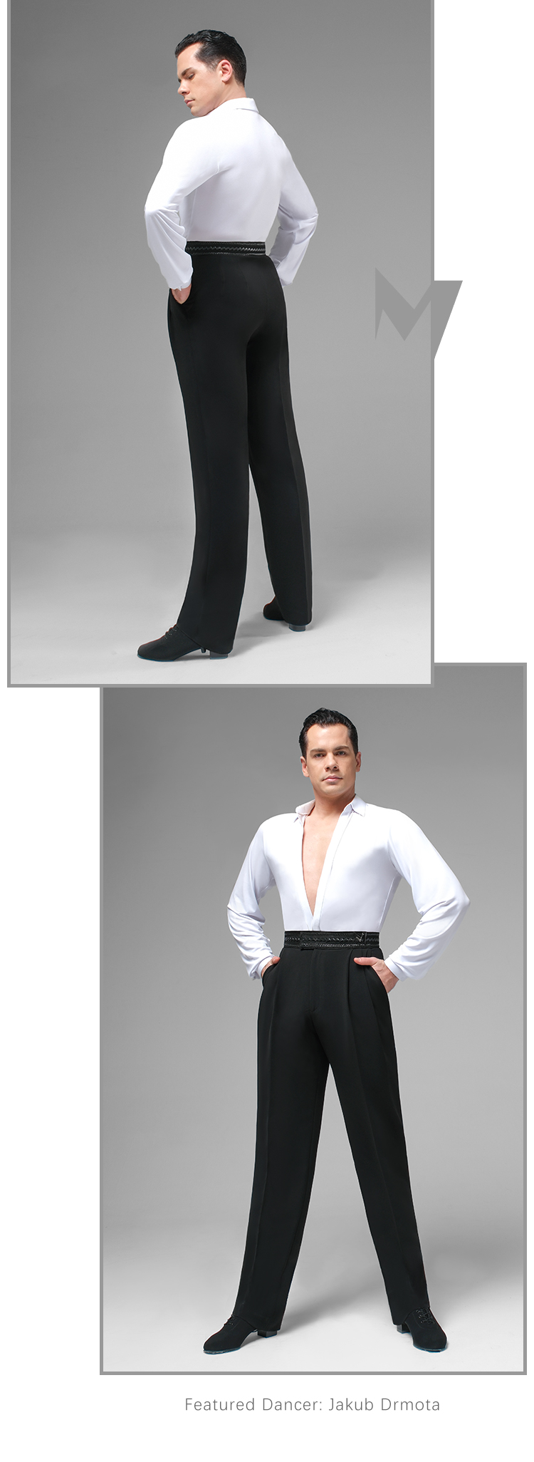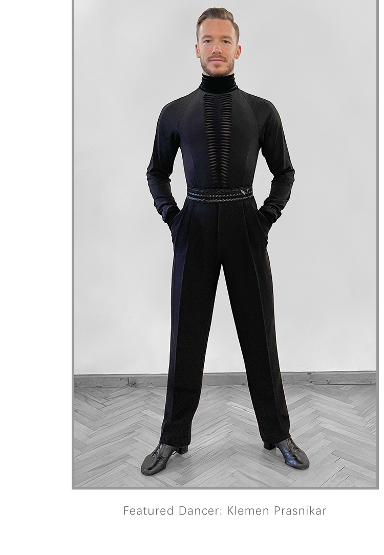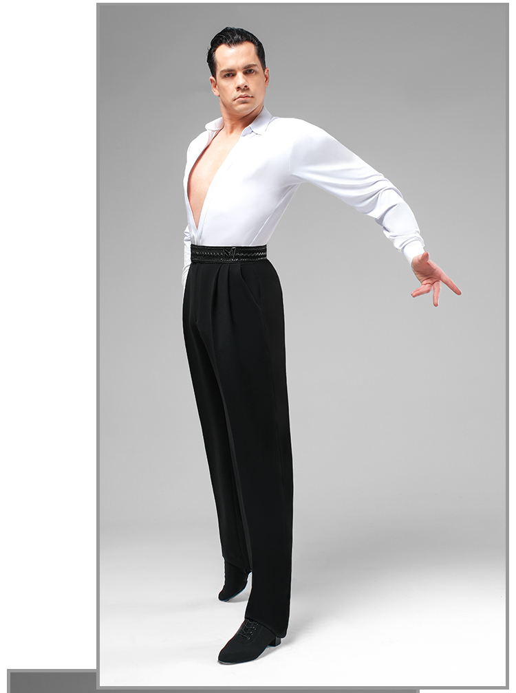 Tapered Latin Dance Pants with Pointed Rear Waist Design, Decorative Buckle & Double Pleats #K006