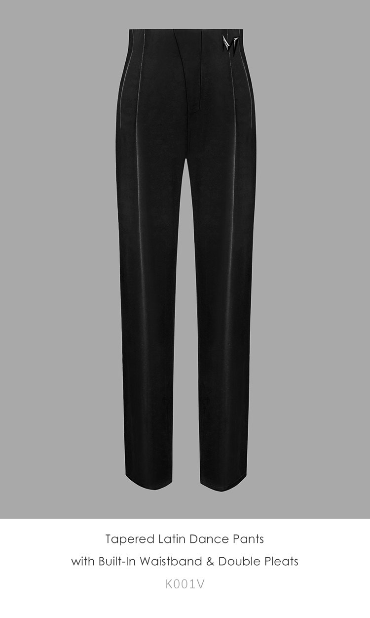 Tapered Latin Dance Pants with Built-In Waistband & Double Pleats #K001V