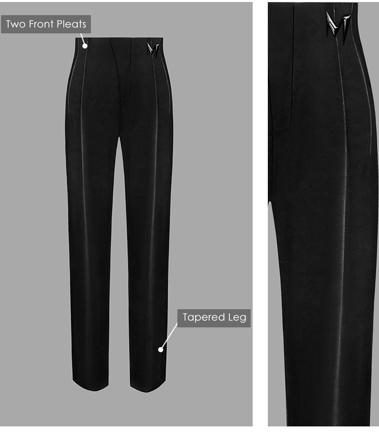 Tapered Latin Dance Pants with Pointed Rear Waist Design, Decorative Buckle & Double Pleats #K006