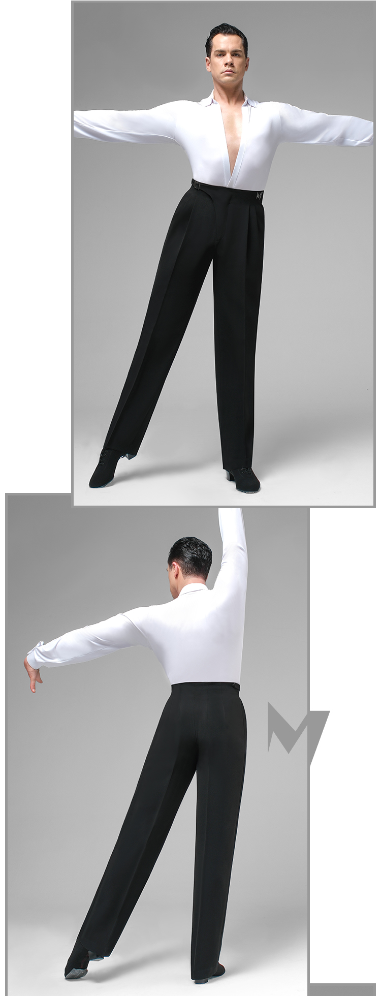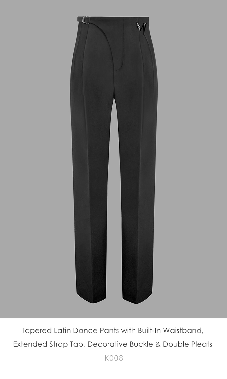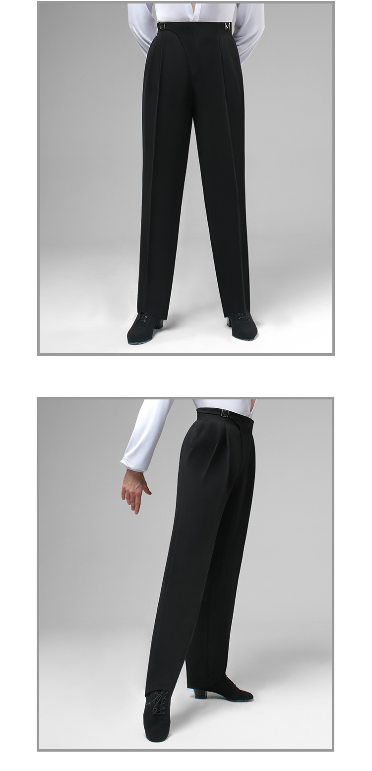 Tapered Latin Dance Pants with Built-In Waistband, Extended Strap Tab, Decorative Buckle & Double Pleats #K008