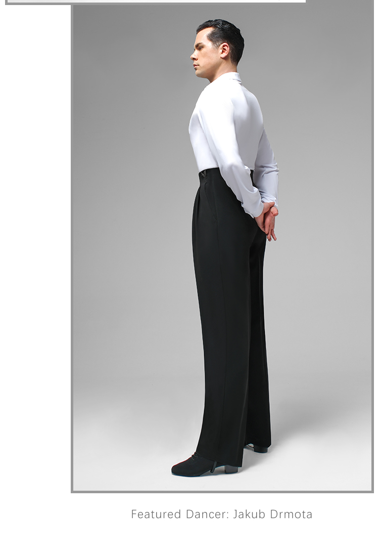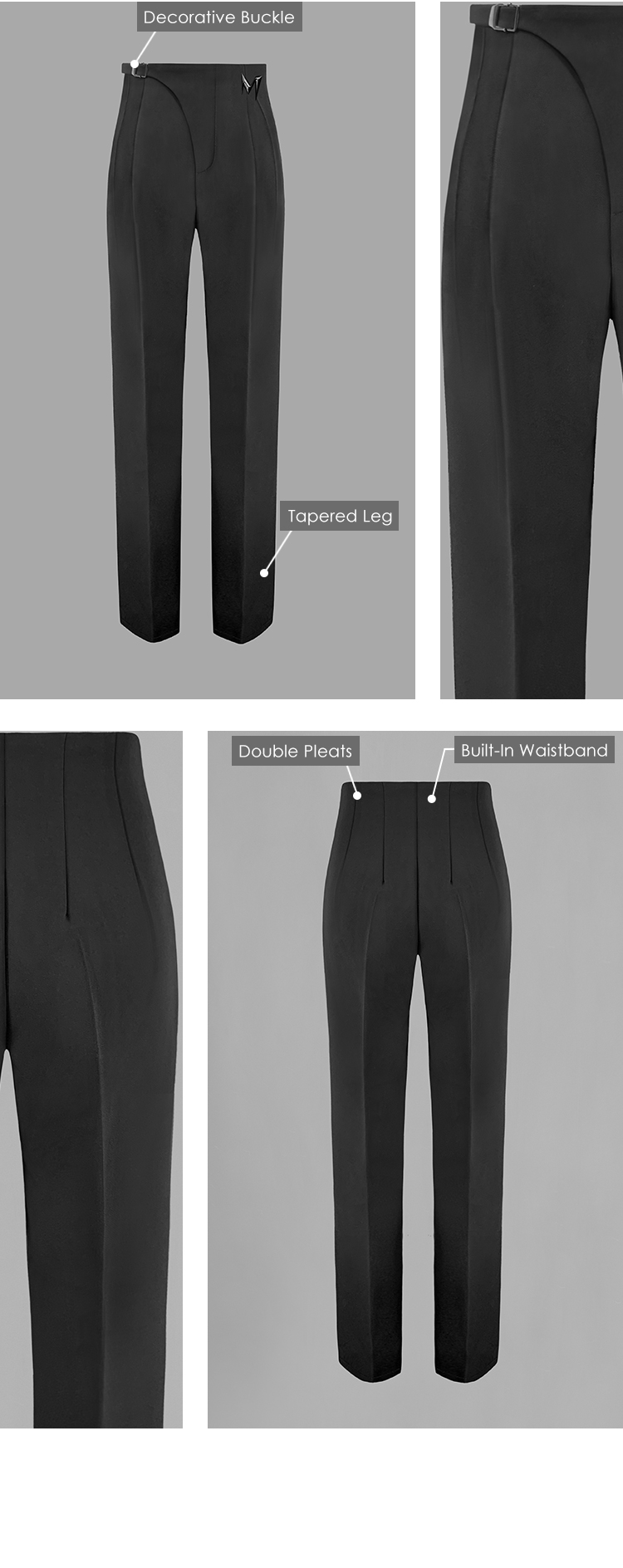 Tapered Latin Dance Pants with Pointed Rear Waist Design, Decorative Buckle & Double Pleats #K006